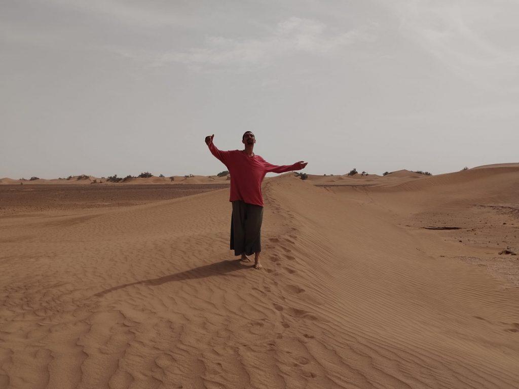 Je suis pris en cet photo par une main d’innocence qui a su immortaliser un moment plein d’abandon en la Grace Divine… C’est pourquoi durant mes retraites au Sahara. Je fais danser mes participants selon le meilleur.